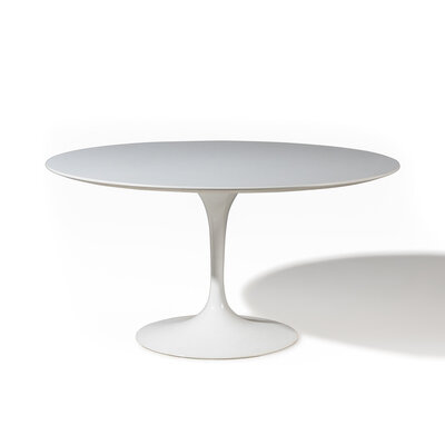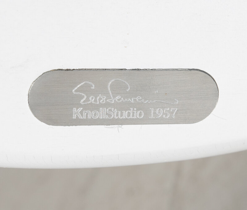 'Eero Saarinen Koll Studio 1957' metal plaque under top of table base.