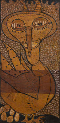 signed Twins Seven, indistinctly titled and inscribed Box 68 / Oshogbo (lower left)