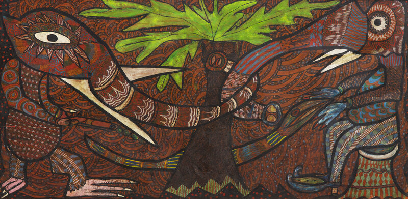 signed Twins Seven Seven, titled and inscribed Box 68 / Oshogbo (lower left)
