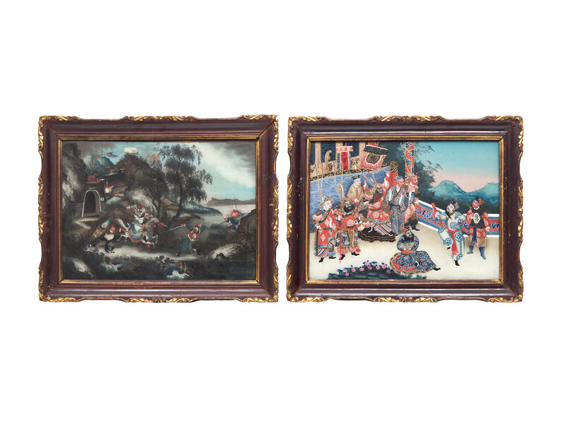 Two Chinese Export Reverse Glass Painted Works, 19th Century