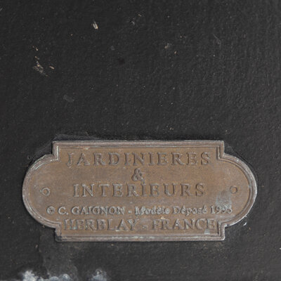 each bearing a metal tag that reads 'Jardinieres & Interieurs / C. Gaignon / Modele Depose 1995 / Herblay France'.
