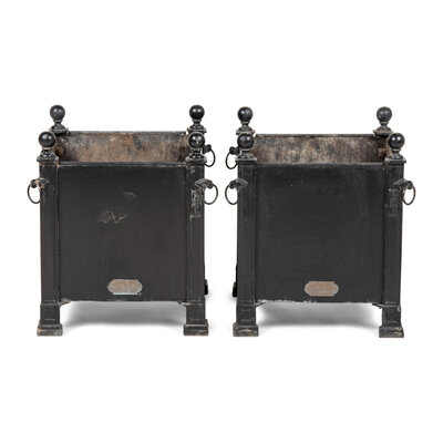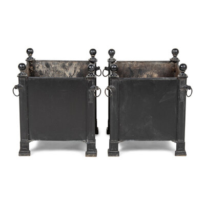 A Pair of Gaignon Black Enameled Metal Jardinières