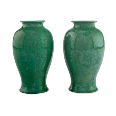 A Pair of Awaji Green Crackle Glazed Ceramic Vases