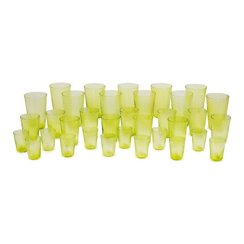 A Group of Green Glass Drinkware
