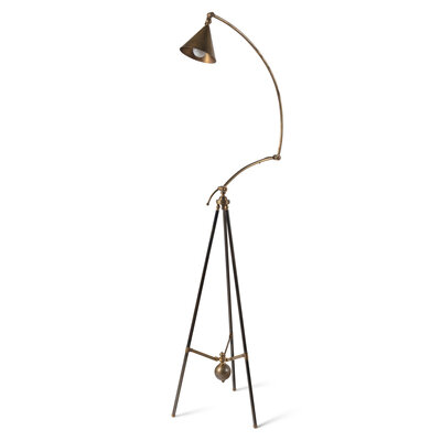 A Pair of Contemporary Bronze Tripod Swing-Arm Floor Lamps