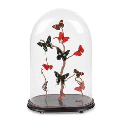 A Collection of Butterfly Specimens in a Glass Cloche