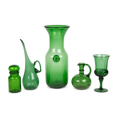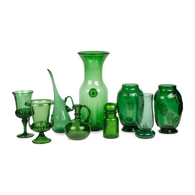 A Collection of Nine Green Empoli Glass Articles
