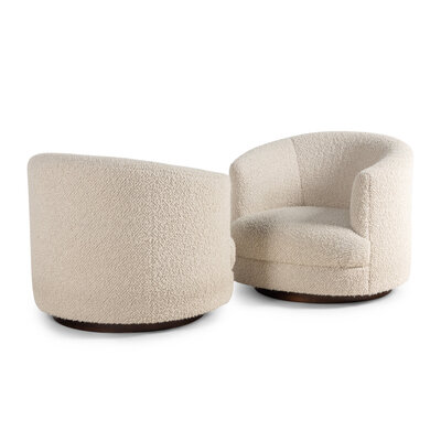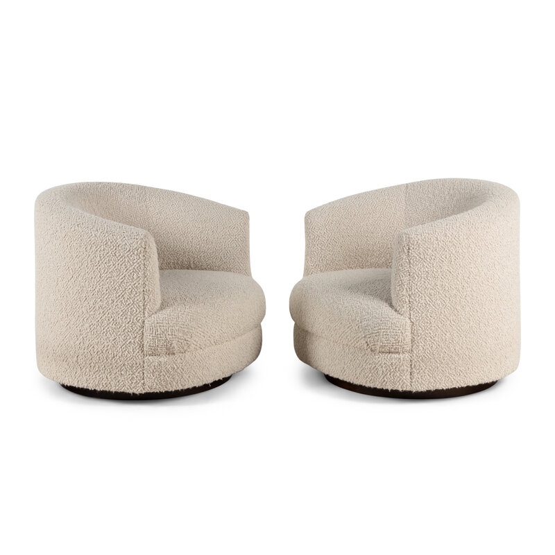 A Pair of Custom Barrel Back Swivel Chairs with Bouclé Upholstery