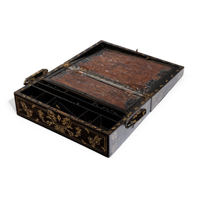 An Anglo-Indian Bone Inlaid Ebony Writing Slope