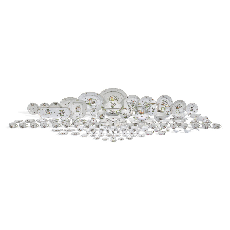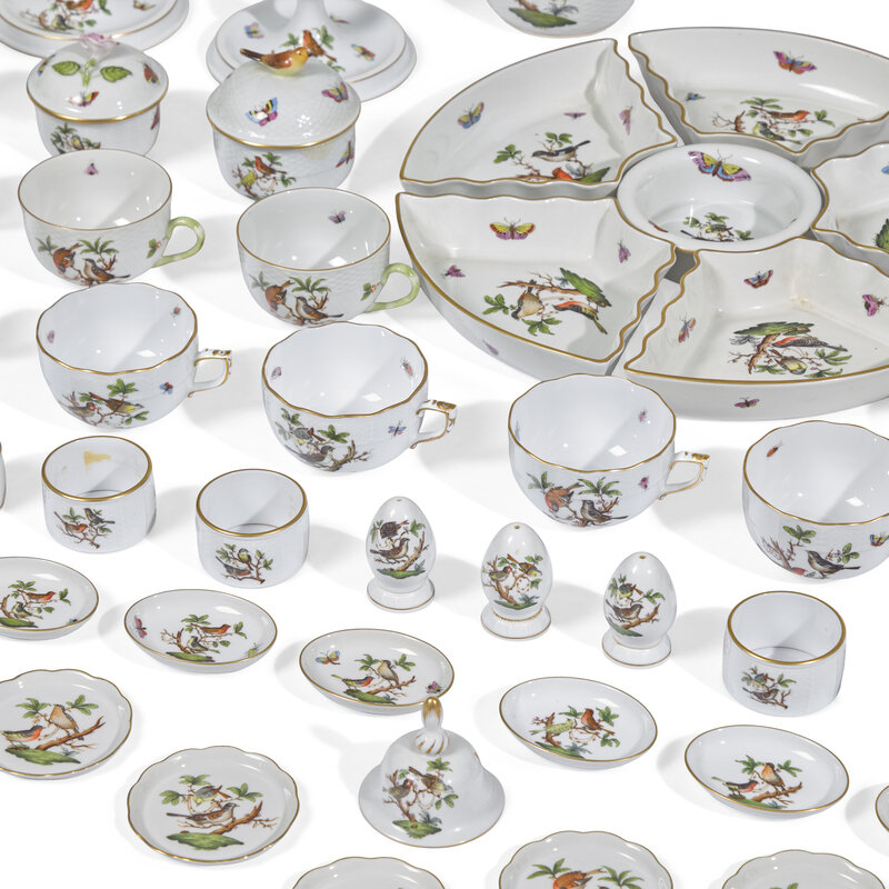 An Extensive Herend Rothschild Bird Porcelain Dinner Service