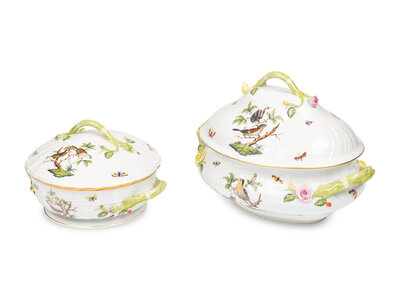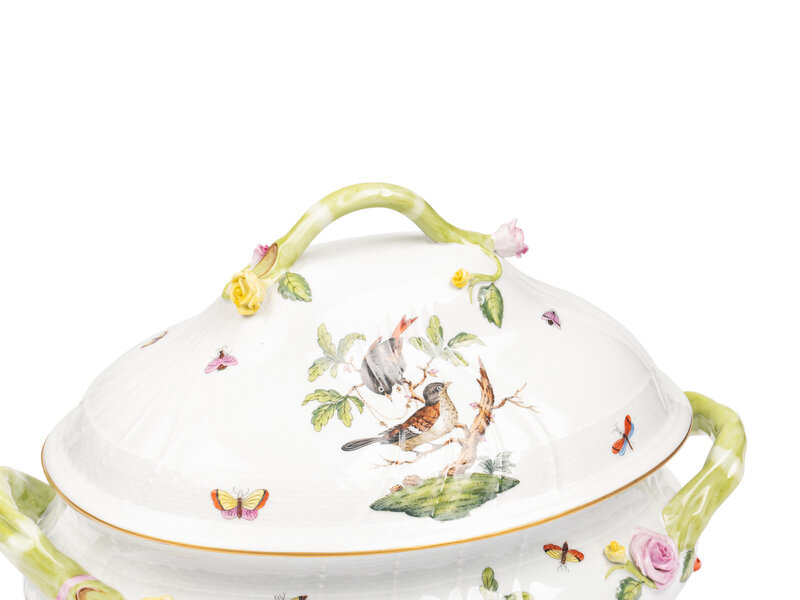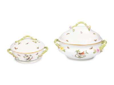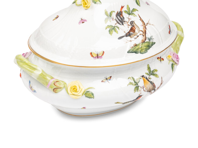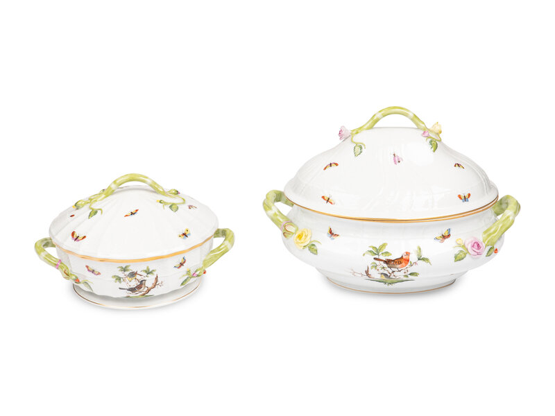 A Herend Rothschild Bird Porcelain Tureen and Covered Vegetable Dish