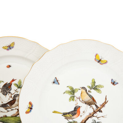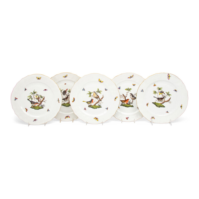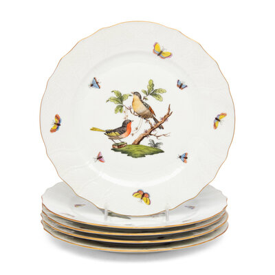 A Set of Five Herend Rothschild Bird Porcelain Dinner Plates