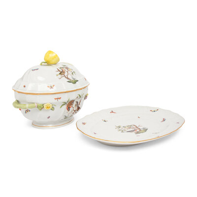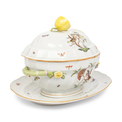 A Herend Rothschild Bird Porcelain Tureen and Underplate