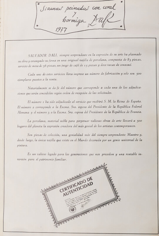 the pattern after Sirenas Peinadas con Coral y Hormiga, designed 1977, number 161, with a Dali Certificate of Authenticity; in a fitted trunk, comprising: