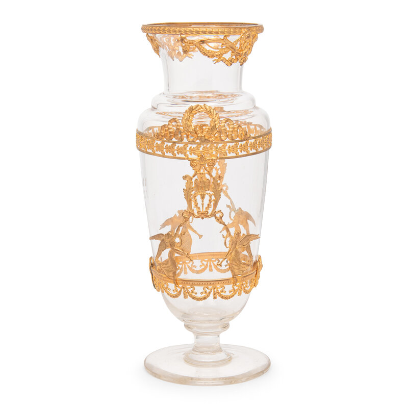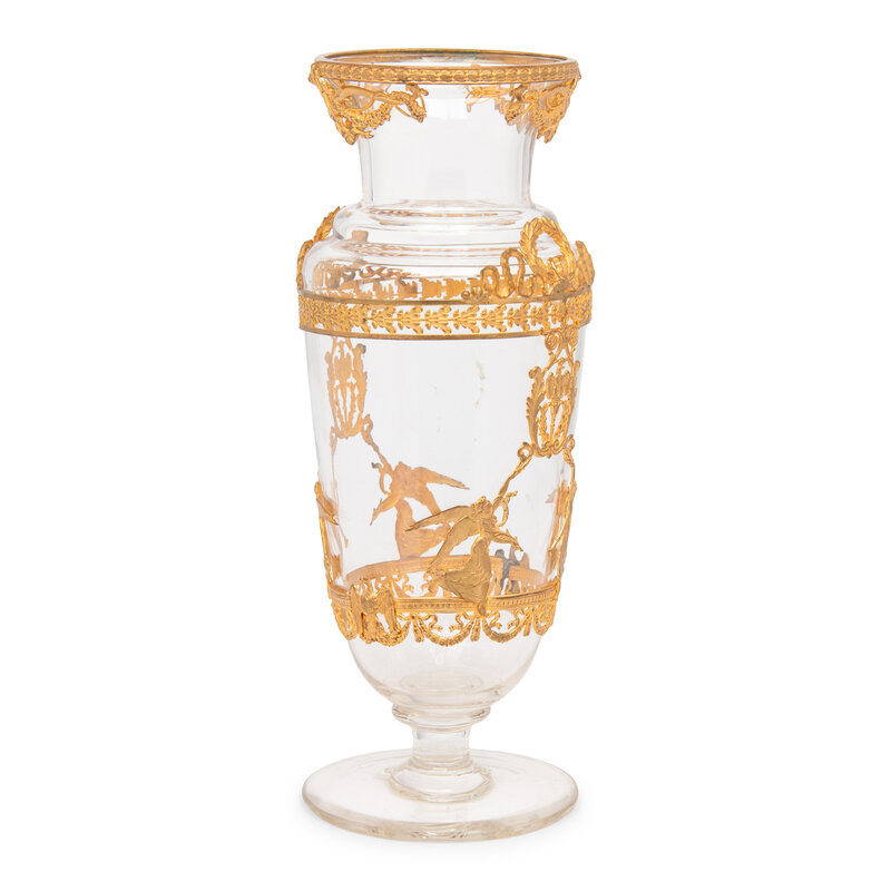 A French Neoclassical Style Gilt Metal Mounted Glass Vase