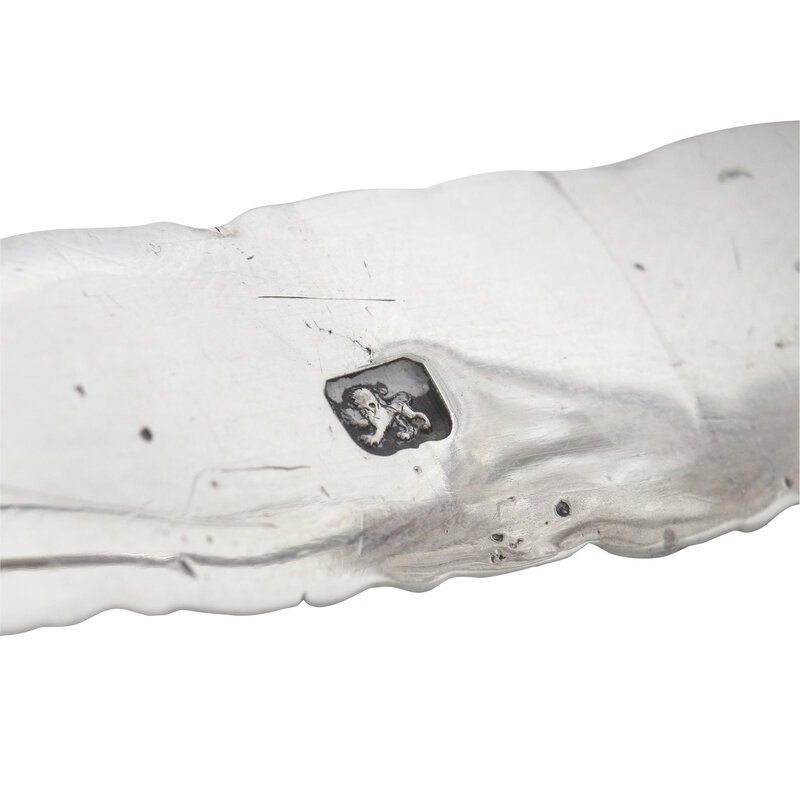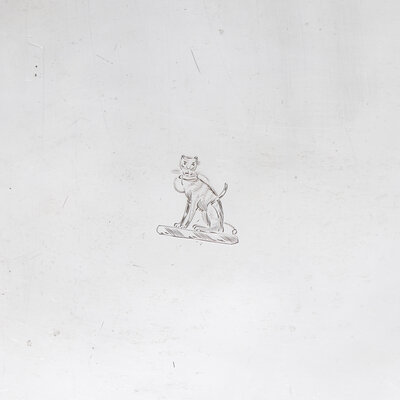 the basin engraved with armorial crest in the form of a cat-a-mountain sejant gardant collared and chained.