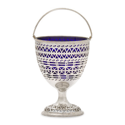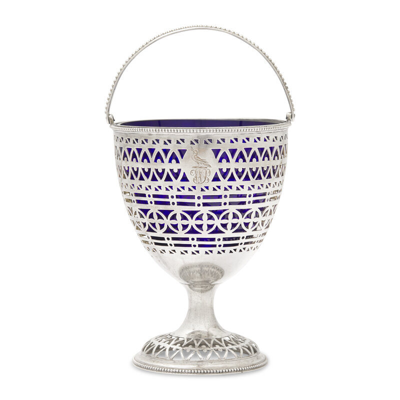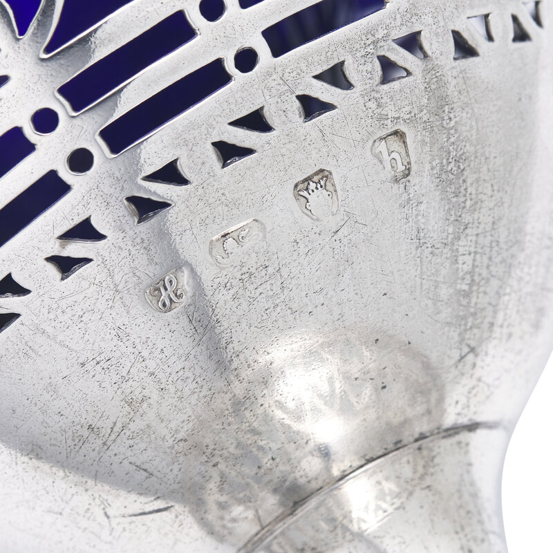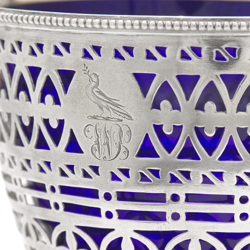engraved with dove holding an olive branch above the initials WB, fitted with a cobalt glass liner.