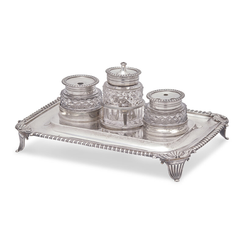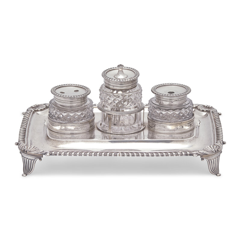 A George III Engraved Silver Ink Stand