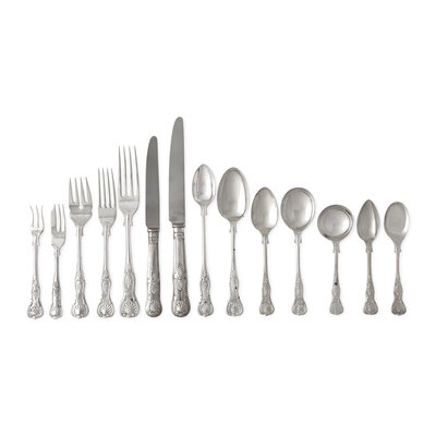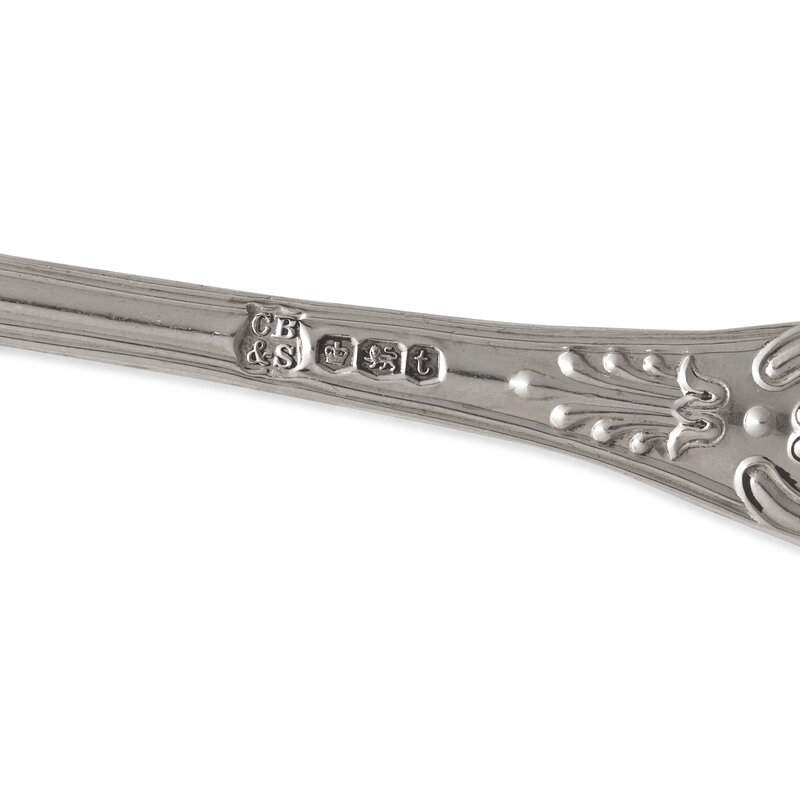 in the English King pattern, including pieces by makers: I.F & Son, Ltd. (possibly Israel Freeman & Son), Sheffield, 1963, 1968, 1971, and 1972; Cooper Brothers & Sons, Sheffield, 1936; C.J. Vander & Co., London, 1959; and Edward Viner (Viners Ltd.), Sheffield, 1966; all marked, comprising: