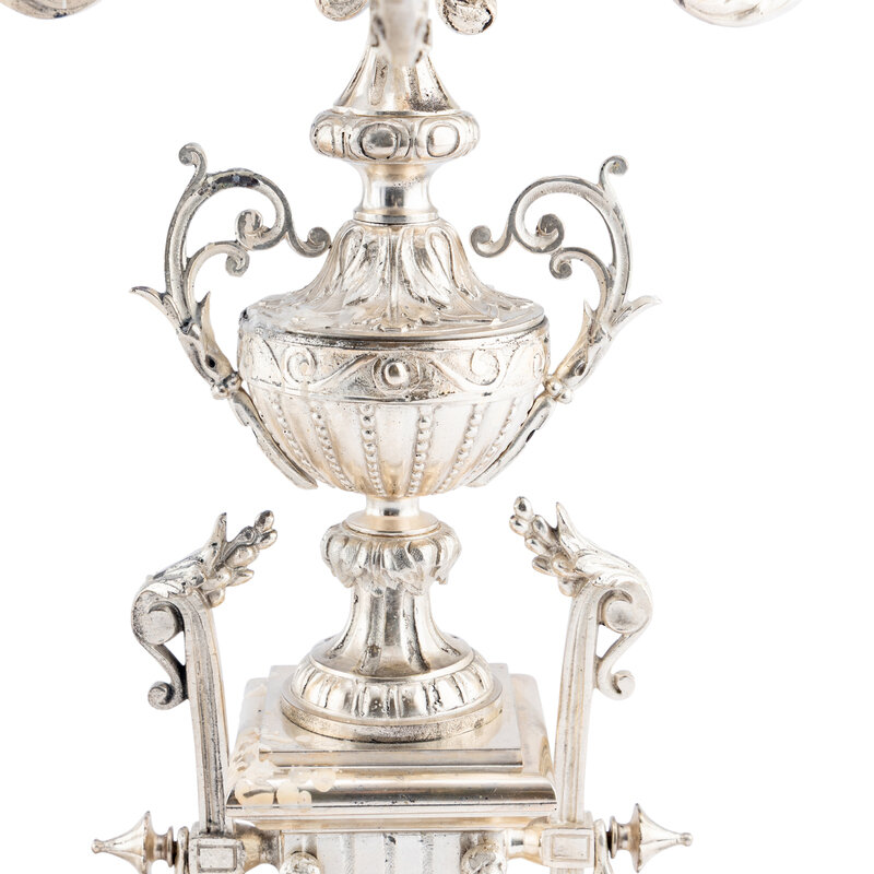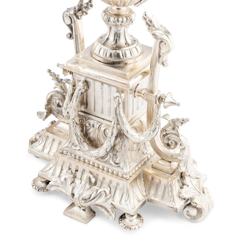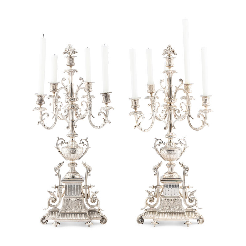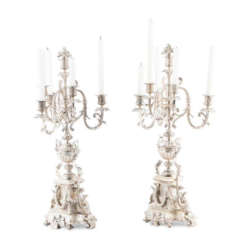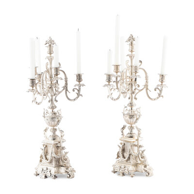 A Pair of Napoleon III Silvered Bronze Six-Light Candelabra