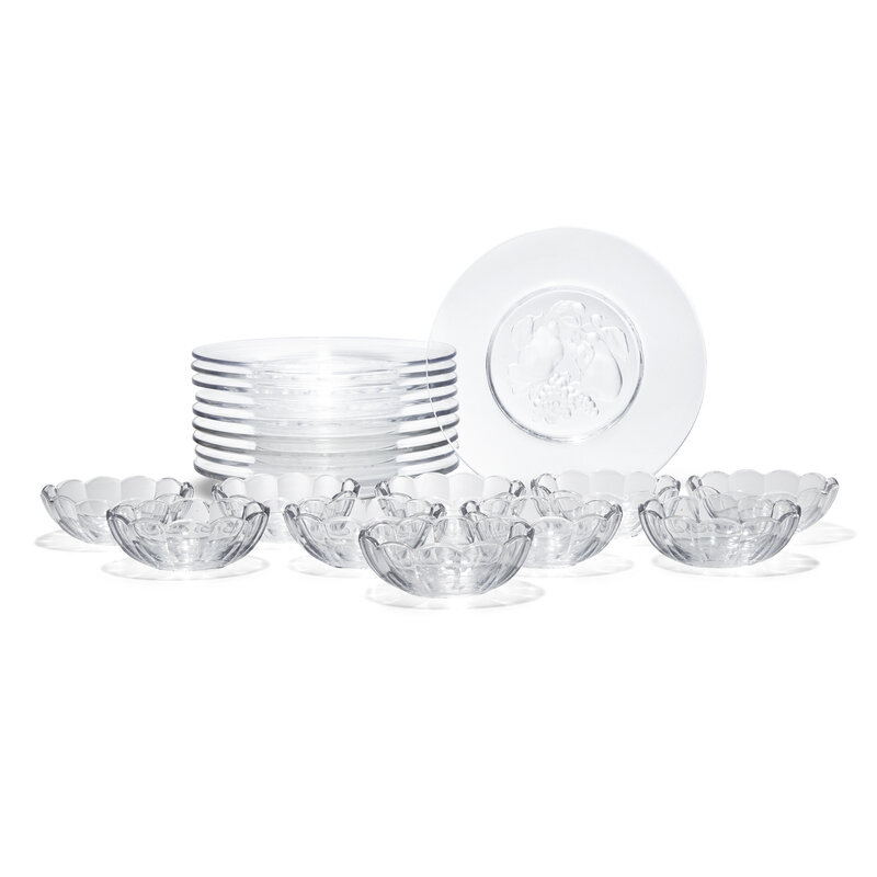 A Val Saint Lambert Cut and Etched Glass Dessert Service