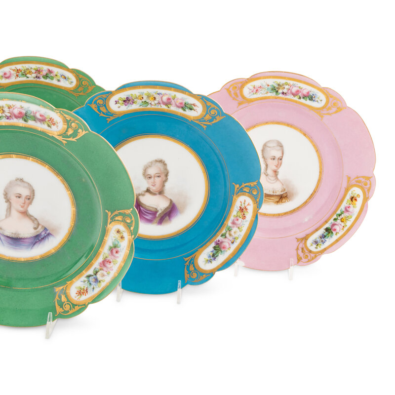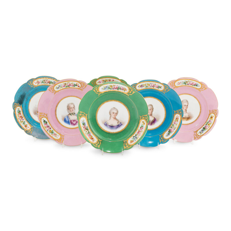 A Set of Six Sèvres-Style Porcelain Portrait Plates