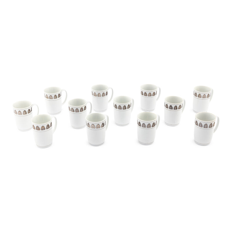 A Set of Twelve Georg Jensen Acorn Porcelain Coffee Mugs