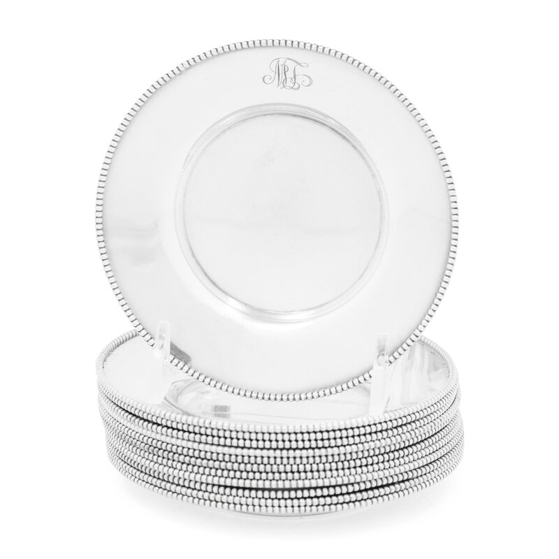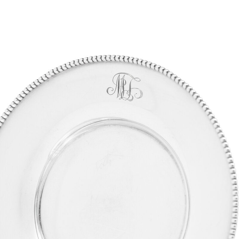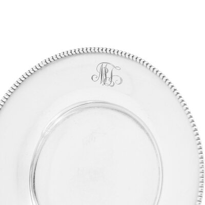 with beaded rim and monogram and engraved script 'LM' monogram to border.