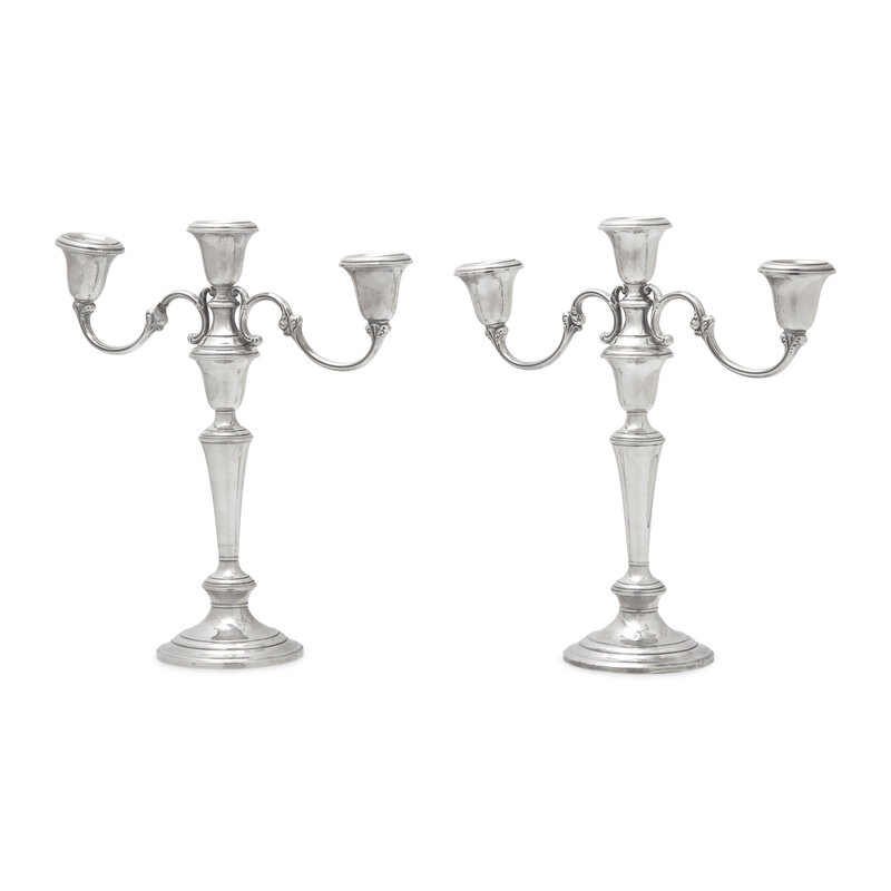 A Pair of American Silver Three-Light Candelabra