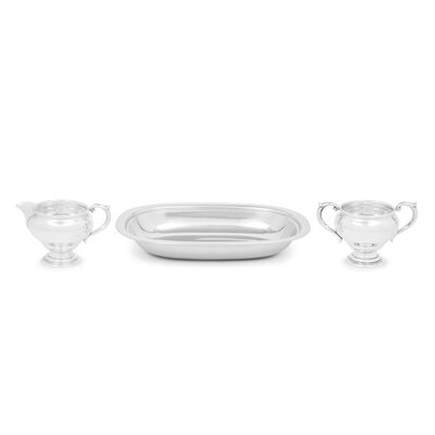 comprising a creamer and sugar set marked for Newport Silver Co, and a serving bowl marked for Reed and Barton.