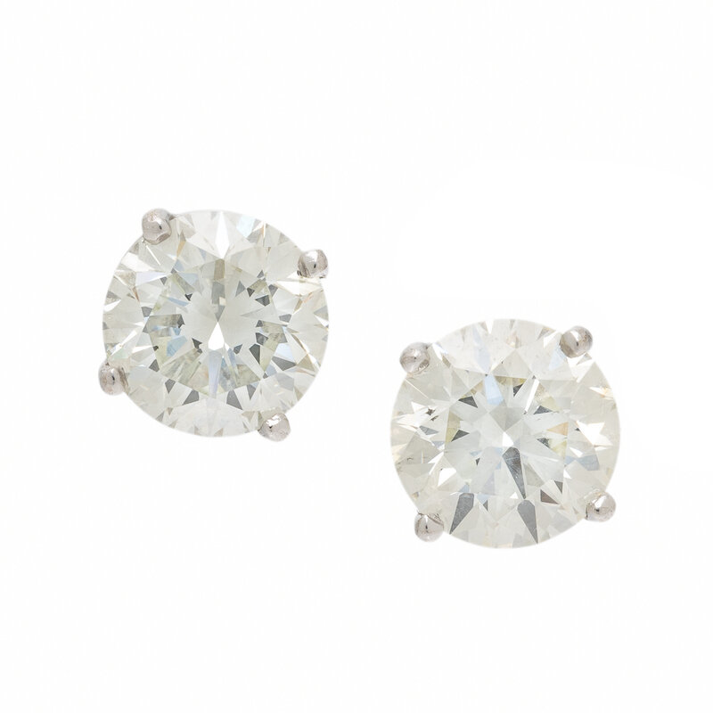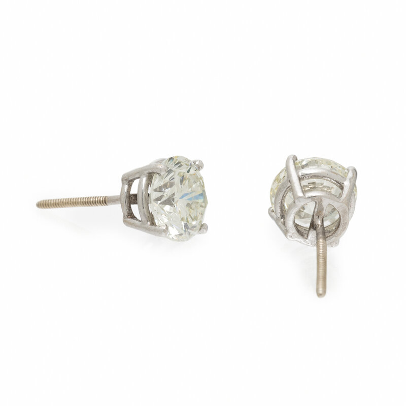 Featuring two round diamonds weighing approximately 1.50 and 1.55 carats respectively. Mounted in white gold. 5/16 inch long.