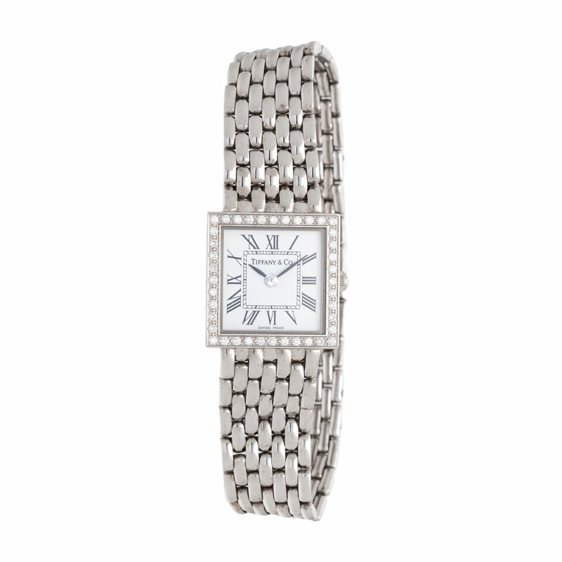 TIFFANY & CO., WHITE GOLD WATCH WITH DIAMOND BEZEL