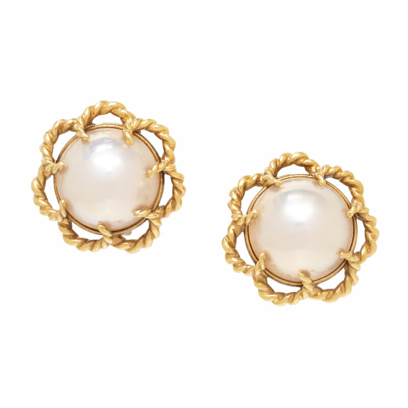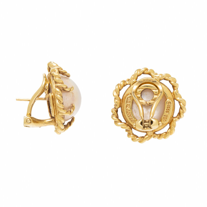 TIFFANY AND CO., MABÉ PEARL AND YELLOW GOLD EARRINGS