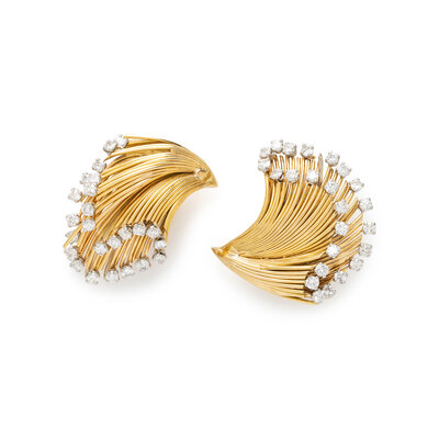YELLOW GOLD AND DIAMOND CONVERTIBLE DRESS CLIPS