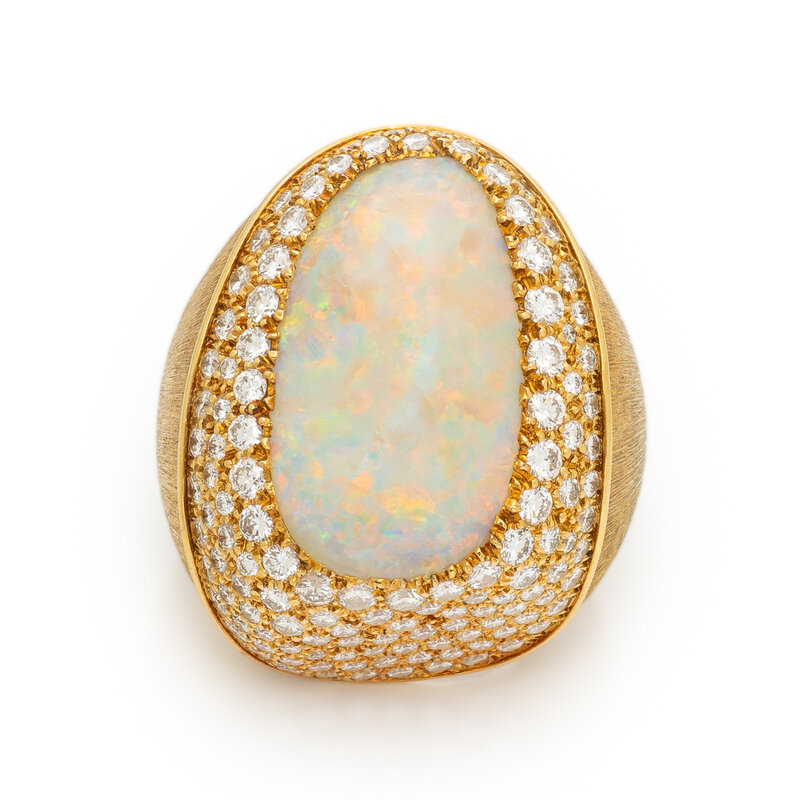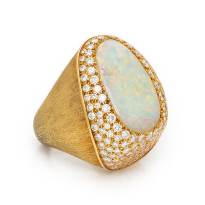 HENRY DUNAY, OPAL, DIAMOND, AND YELLOW GOLD RING