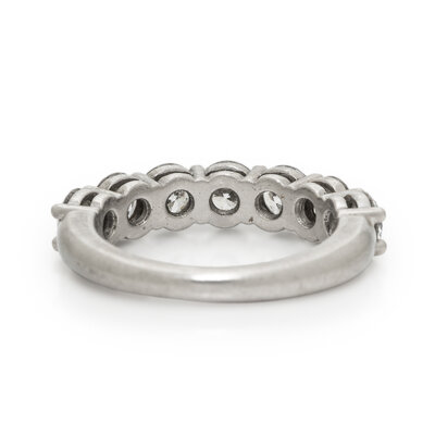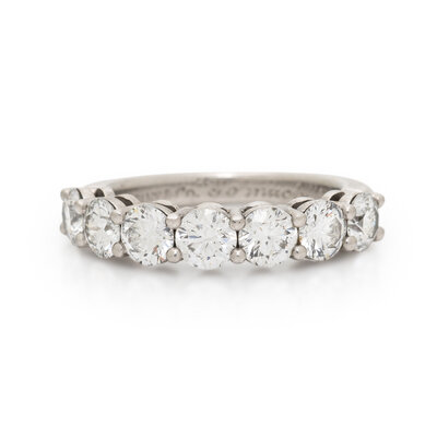 Featuring seven round diamonds weighing approximately 2.05 carats total. Mounted in platinum. Ring size 6.