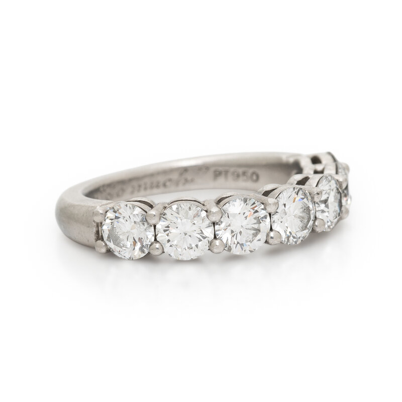TIFFANY & CO., SEVEN DIAMOND AND PLATINUM RING