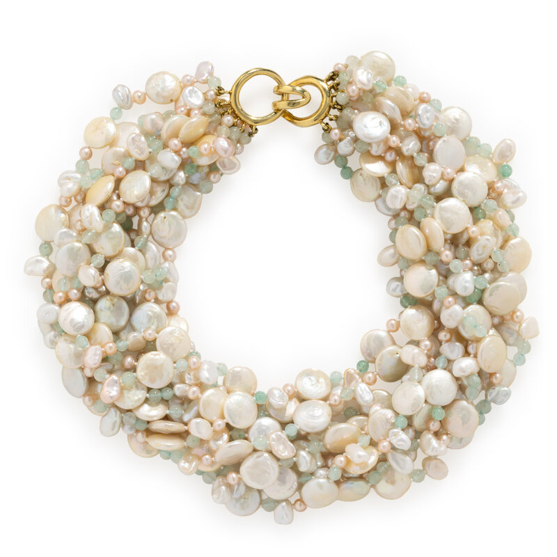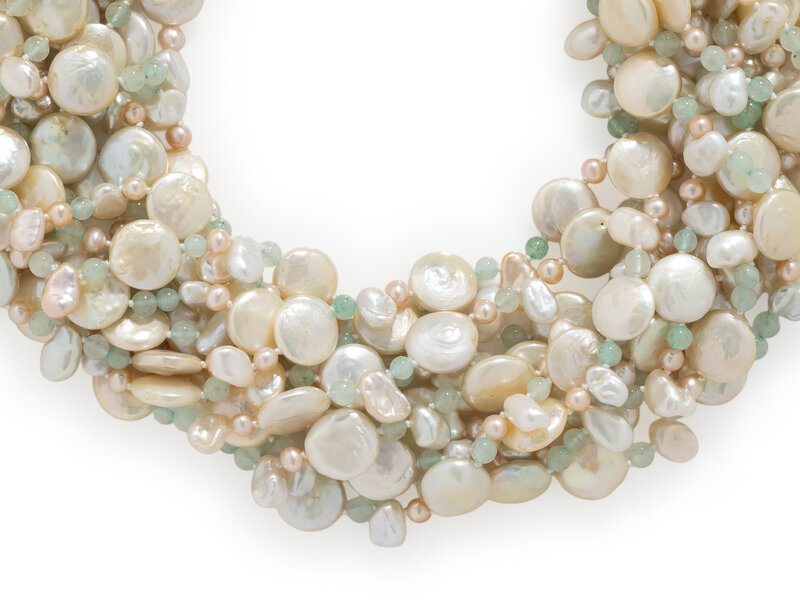 MISH, CULTURED PEARL AND AVENTURINE QUARTZ TORSADE NECKLACE