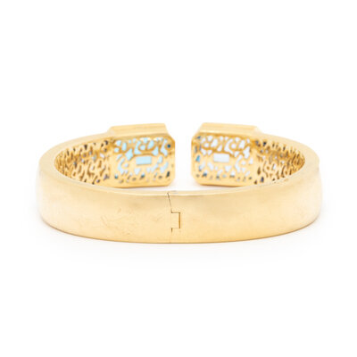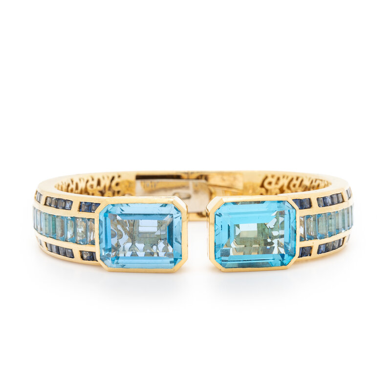 BLUE TOPAZ, SAPPHIRE, AND YELLOW GOLD CUFF BRACELET