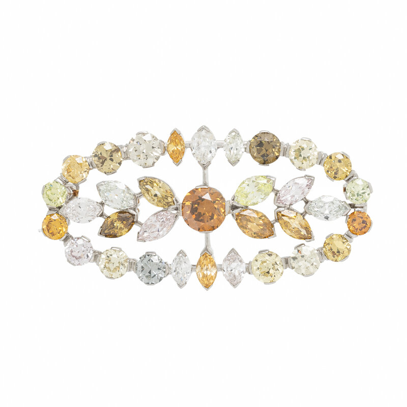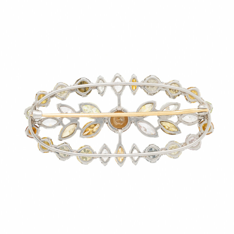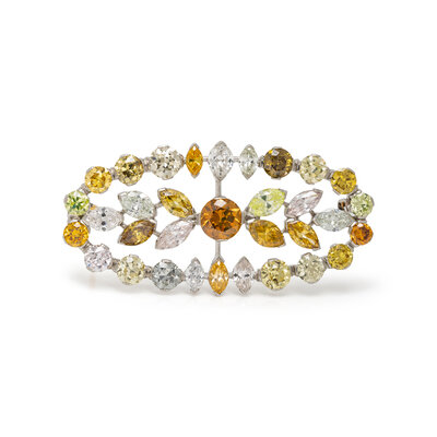 COLORED DIAMOND AND DIAMOND BROOCH