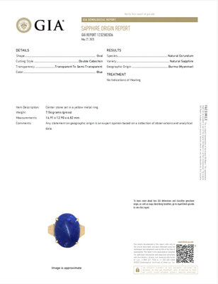 GIA, 2025, Report No. 1232582836, Natural Corundum, Natural Sapphire, Burma (Myanmar), No Indications of Heating