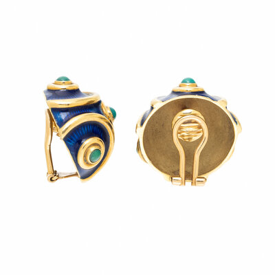 TIFFANY & CO., TURQUOISE, ENAMEL, AND YELLOW GOLD EARRINGS