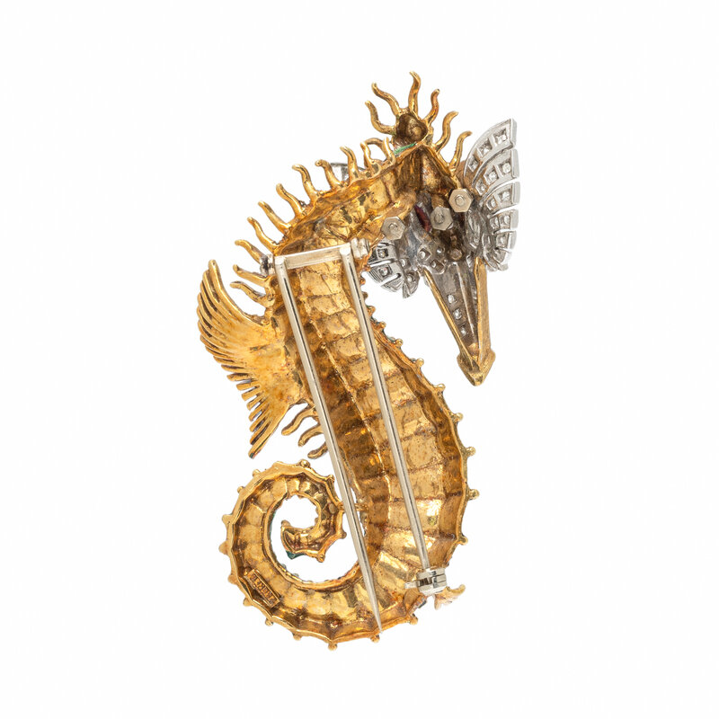BICOLOR GOLD, DIAMOND, AND ENAMEL SEA DRAGON BROOCH