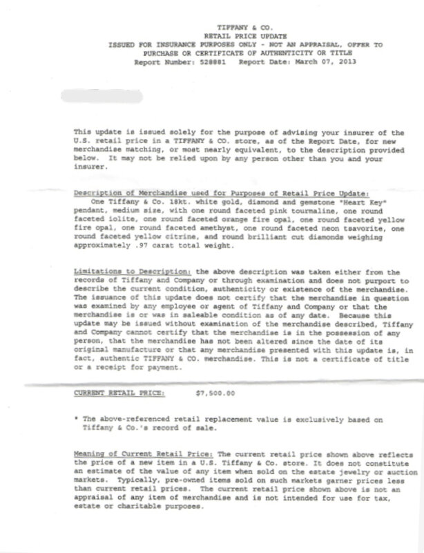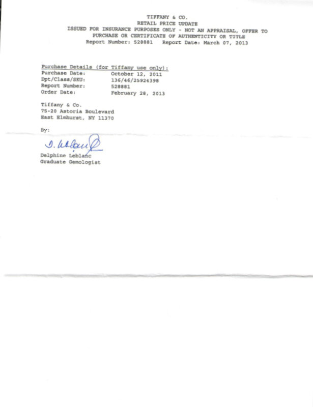 Accompanied by a Tiffany & Co. box and valuation report.