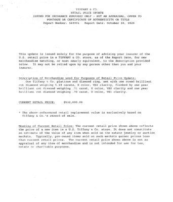 Stamp: TIFFANY & CO. PT950 24746402 5.19Ct.