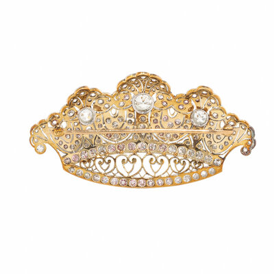 DIAMOND AND PLATINUM-TOPPED GOLD CROWN BROOCH