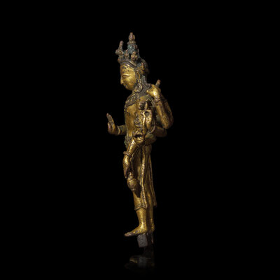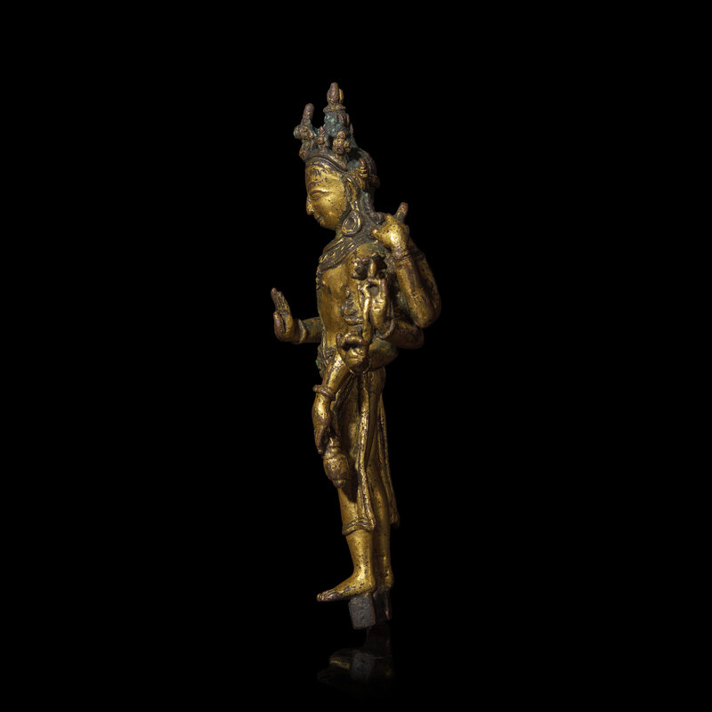 A Nepalese Gilt Bronnze Standing Figure of Avalokiteshvara, 14th/15th Century