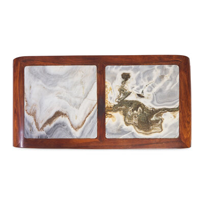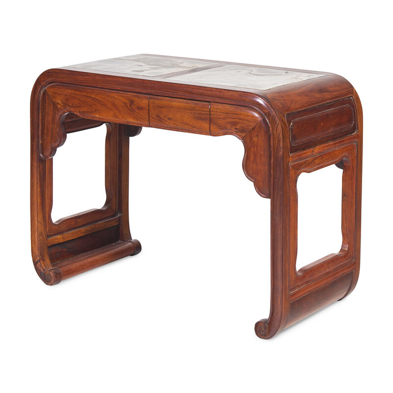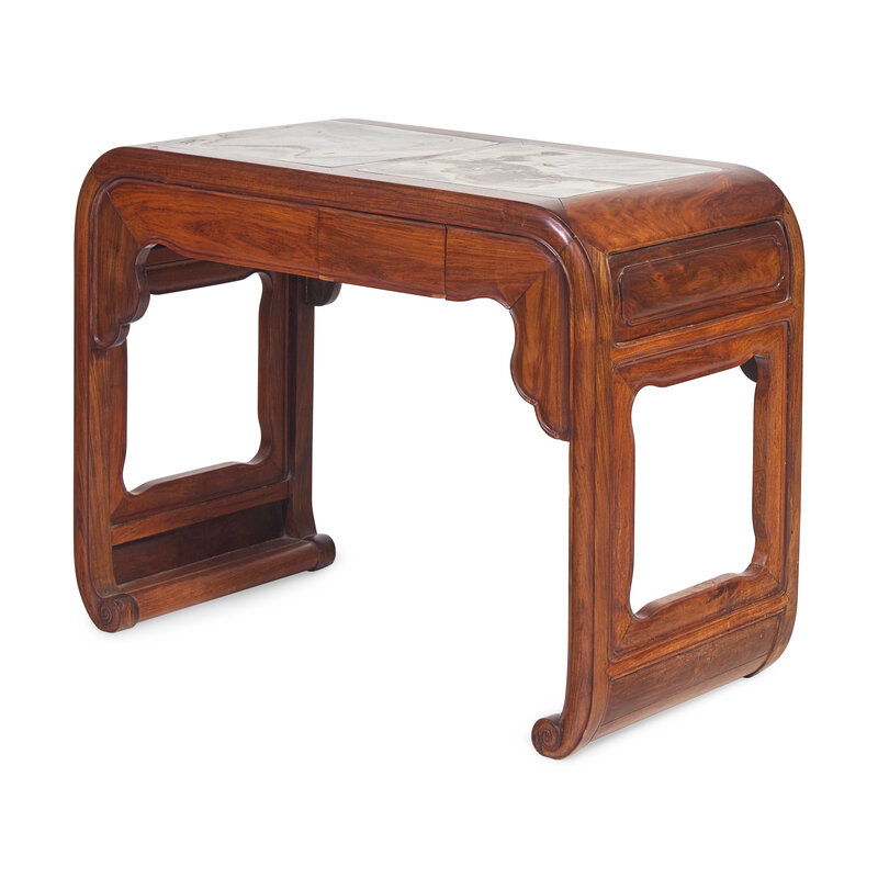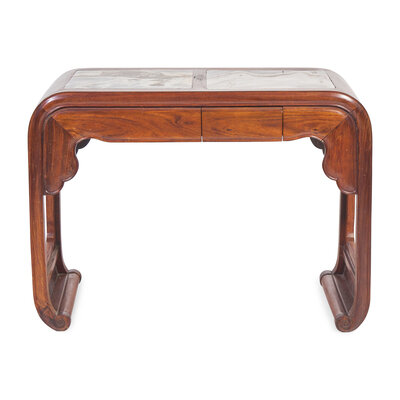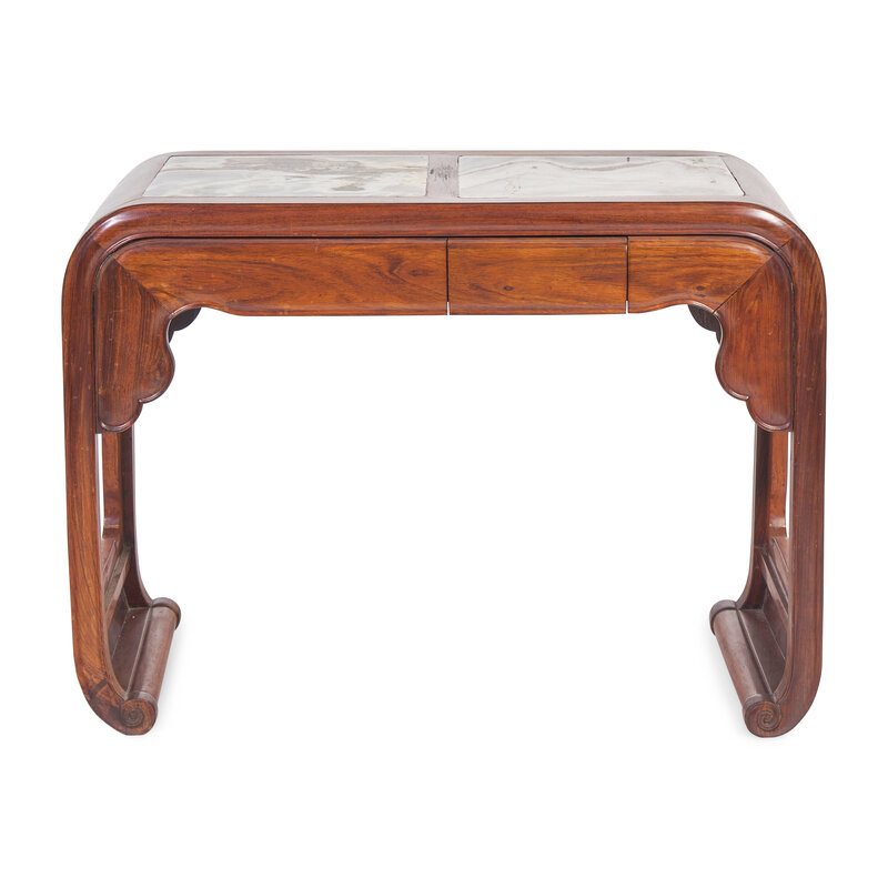 清晚期 鐵力木嵌大理石書卷式條案