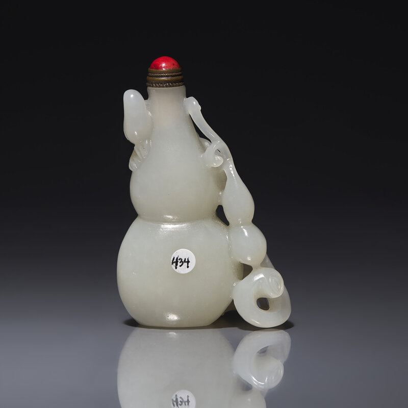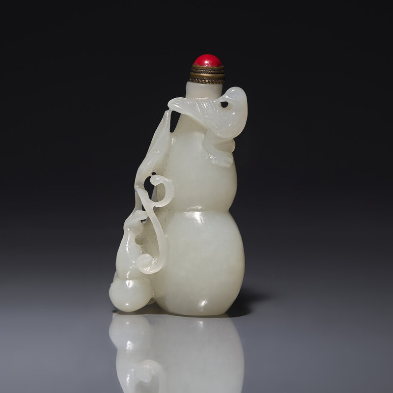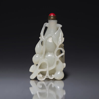 A Chinese White Jade 'Gourds' Snuff Bottle