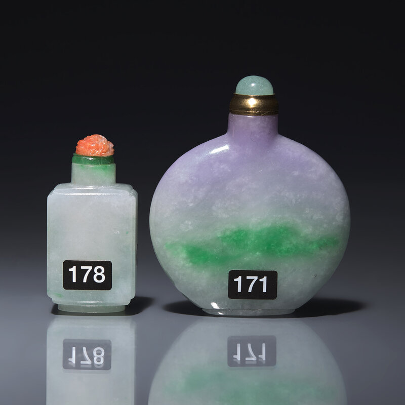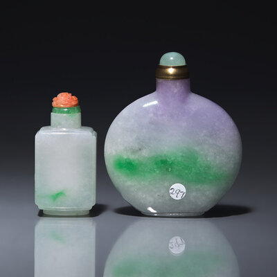 Two Chinese Jadeite Snuff Bottles, 19th to 20th Century